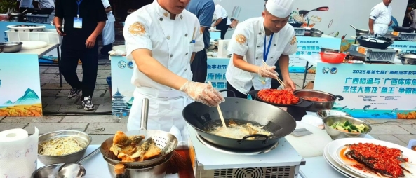 在鱼品烹饪大赛活动现场,厨师们用新鲜的稻田鱼和水库鱼制作出香气四溢的美味佳肴,不仅外观精美,浓郁的鲜香弥漫活动现场。