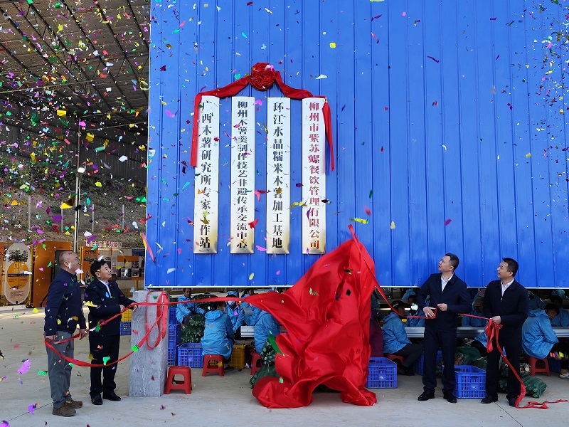 领导、嘉宾共同为“环江水晶糯米木薯加工基地”揭牌