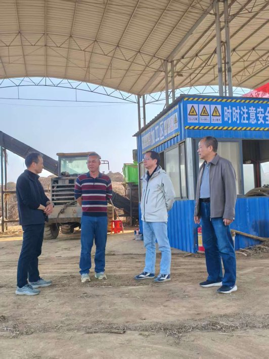图为调研组在柳城县太平镇蔗叶综合利用点进行指导