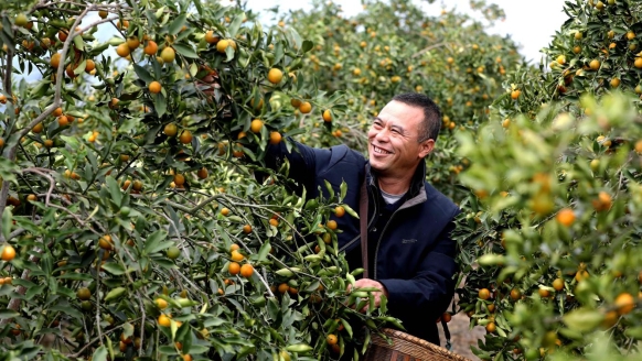 融安县大将镇大三马屯桔农潘敏隆在采摘金桔 覃庆和拍摄