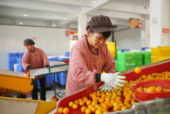 上午9点,镇上的金桔合作社内一片繁忙。工人们正将刚采收的金桔分拣、包装,每一颗都经过精心分级,贴上可追溯的二维码,准备发往全国。“过去我们只管种,卖不卖得上好价钱,心里没底。”社员黄六成如今话语踏实,“现在和加工厂、电商平台都签了订单,种什么、怎么种、卖哪里都有规划。去年光合作社分红,就占了我家收入的三成。”
