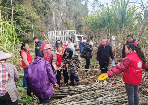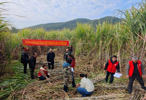 12月25日,融水县农业农村局组织专家,对广西乡村科技特派员“一县一团”融水县团在融水县融水镇东良村广西融水县正禹农业科技有限公司甘蔗宽行丛生套种花生科技示范基地开展现场测产查定。