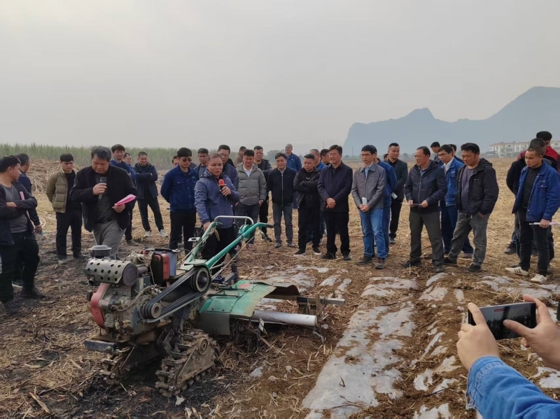 讲解结束后,农机生产企业代表现场进行了机械介绍与操作演示。此次现场会通过政策宣传与实用技术展示相结合的方式,有效提升了与会人员对机械化作业技术和惠农政策的理解,对推广宿根蔗机械化盖膜技术、提高甘蔗生产效益具有积极推动作用。