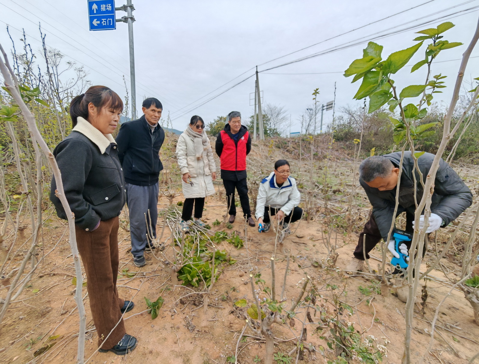 科技人员实地查看了桑树生长状况、冬季管护措施落实情况。针对此次寒潮天气影响,分别就未完成冬伐桑园、冬伐后已出芽长叶桑园、冬伐后尚未出芽长叶桑园等不同管护阶段桑园,给出了防寒抗冻的针对性管护技术措施,并系统讲解了桑园冬季管护技术要点,为示范户发放桑园管护复合肥与有机肥。同时,针对农户在冬季剪伐桑树时普遍习惯采取的低刈方式,科技人员现场向蚕农指出了该低刈方式存在的不足,并选取地块现场演示桑树科学冬伐技术,作为与低刈方式的对比开展示范展示,让蚕农学习科学种植技术学有样板,做有示范。