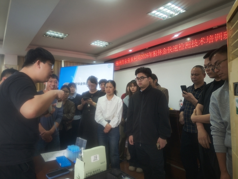 培训会邀请北京壹拾智检生物科技有限公司技术工程师讲解胶体金检测技术及操作要点,并现场为学员实操胶体金快速检测流程。柳州市农业技术推广中心农产品质量安全生产指导科科长李翔为学员们讲解种植业农产品采样规范及注意事项。柳州市农业技术推广中心农产品质量安全生产指导科副科长胡支向给大家解读新的食品安全国家标准《食品中农药最大残留限量BG2763-2026》标准。培训班还组织参观柳城县农产品质量安全检测中心定量检测实验室。