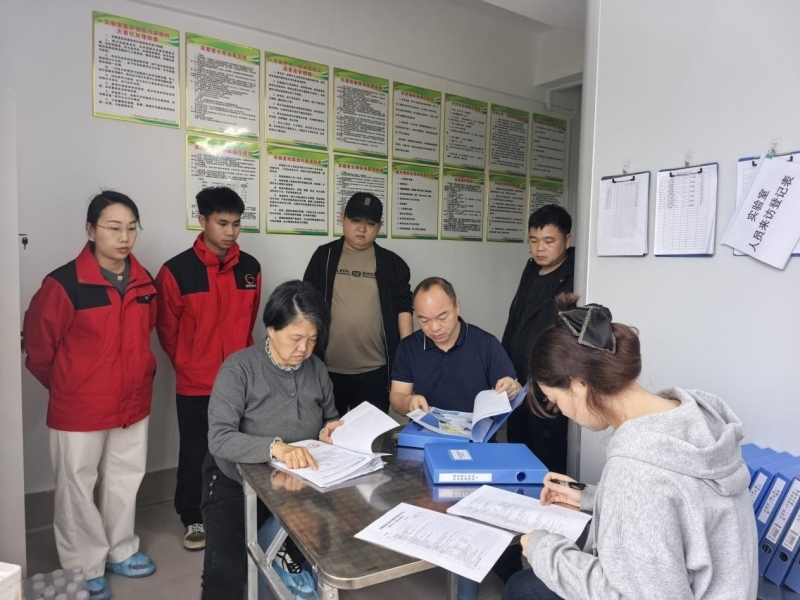 本次考核由柳州市动物疫病预防控制中心黄溢泓正高级兽医师担任组长,马小蓉推广研究员、许宗丽高级兽医师、梁竞臻兽医师组成专业评审团队,联动柳南区、融水县农业农村局协同配合,保障考核工作有序推进。考核期间,专家组严格对照屠宰企业非洲猪瘟检测相关标准条款,采取资料核查、现场查验、实操考评相结合的方式,逐项细致核验。重点查阅实验室管理制度、检测记录、仪器设备台账等档案资料,实地检查实验室功能布局、设施配置、生物安全防护等硬件,全程监督实验人员操作流程,细致核查样品处理、检测流程、结果判定等关键环节的规范性与专业性,开展全面、严格、科学、公正的综合评价,对发现的不符合项,指导企业整改并要求把整改材料提供给专家组复核。