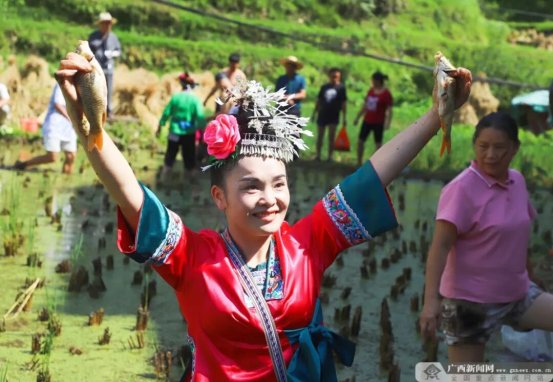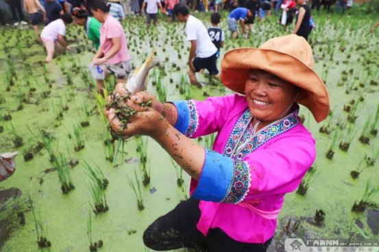 稻田抓鱼活动现场。融水融媒体中心供图