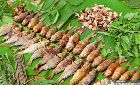 图为烧鱼季上老乡制作的烤鱼。融水融媒体中心供图