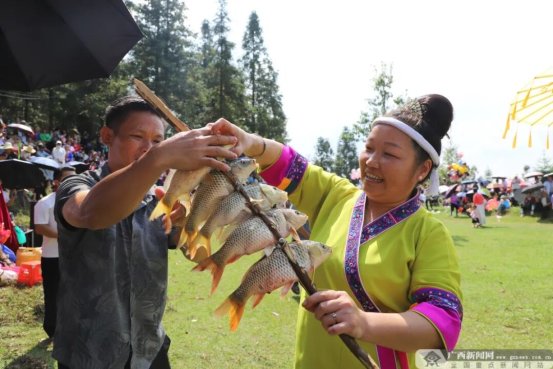 同时,三大分会场活动各具特色:广东深圳分会场聚焦“粤桂协作”,助力“广西库库魚”拓展市场;融水落久水库分会场开展水库捕鱼活动,展现大水面养殖成果;安太乡培秀村分会场举办“金秋烧鱼季”,让游客体验苗族民俗与美味。