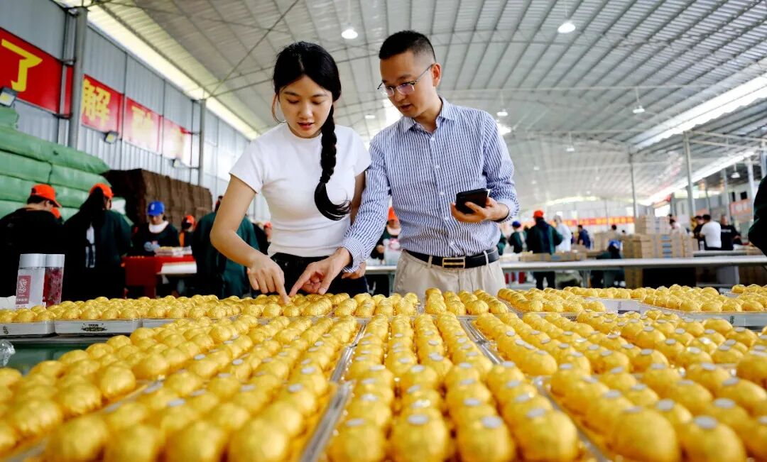 在广西爱田农业有限公司,网络带货达人在参观金桔包装。(覃庆和 摄)