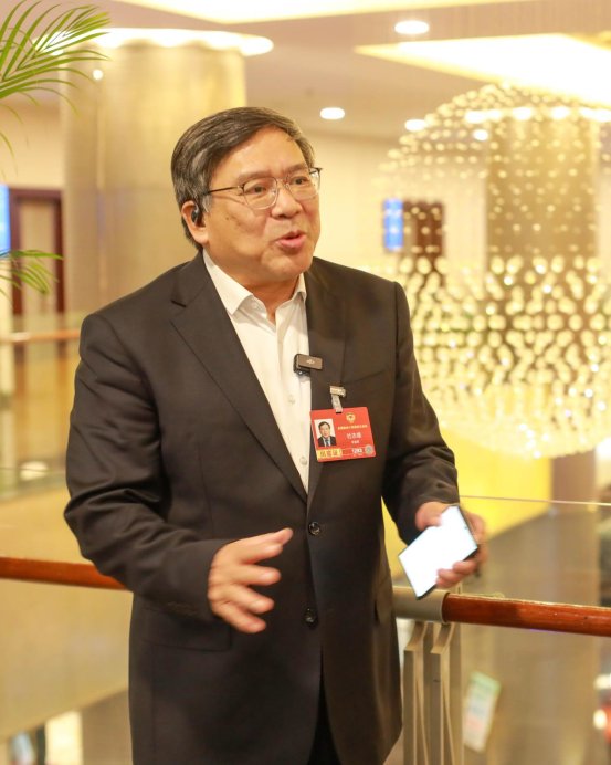 住桂全国政协委员、时任广西北部湾国际港务集团有限公司副总经理(现任广西投资集团有限公司副总经理)张树新(新华社记者 殷刚 摄)