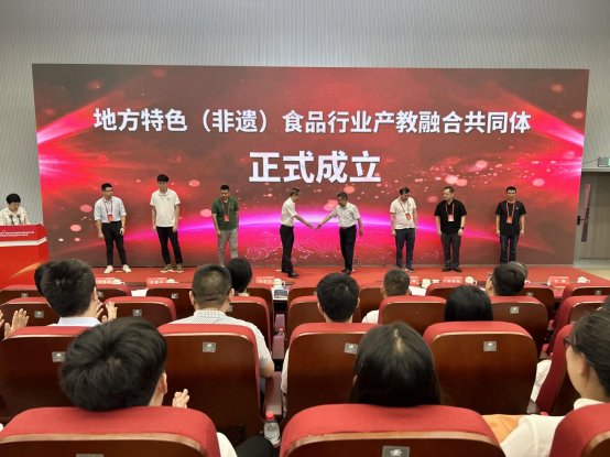 一是构建跨领域产教融合沟通平台,链接多元主体实现知识成果与产业需求对接。2024年7月18日,由广西螺霸王食品科技有限公司、柳州职业技术大学等单位牵头,联合全国范围内的企业、院校和科研单位组建的“地方特色(非遗)食品行业产教融合共同体”正式成立,搭建长效沟通与协同创新平台。该共同体吸纳成员单位超40家,链接全国跨区域、跨行业的优质资源,构建“政、行、企、校”深度对话、资源共享、优势互补的机制化沟通渠道,推动学术资源与市场需求高效对接,直接服务于产业人才培养与技术攻关。