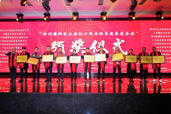 2025年1月9日,柳州螺蛳粉工业化十周年大会颁奖现场