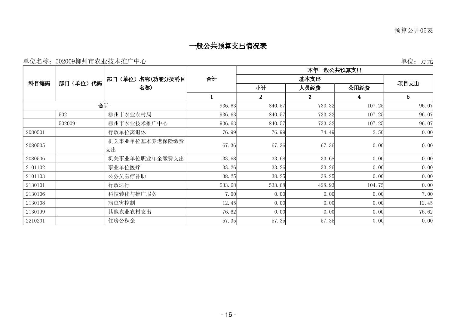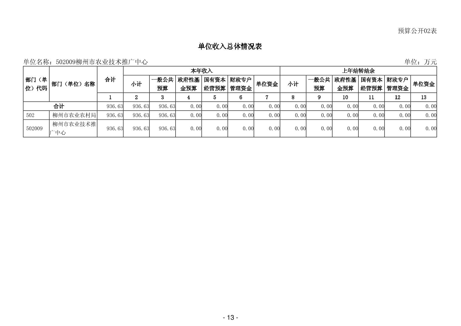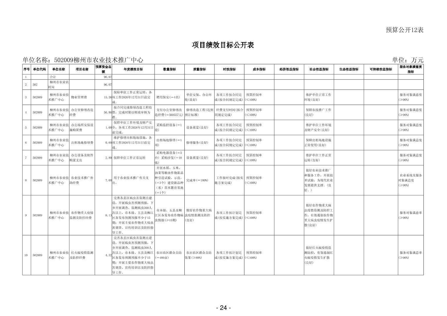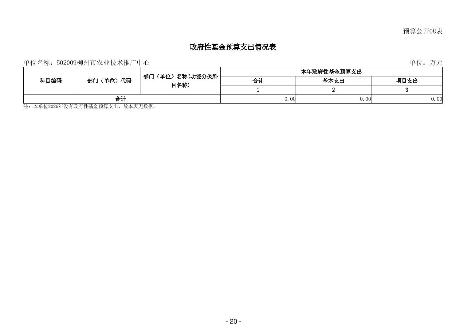 502009柳州市农业技术推广中心2026年单位预算公开说明