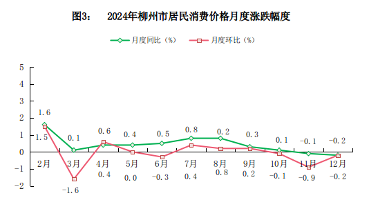 表2:2024年柳州市居民消费价格比上年涨跌幅度
